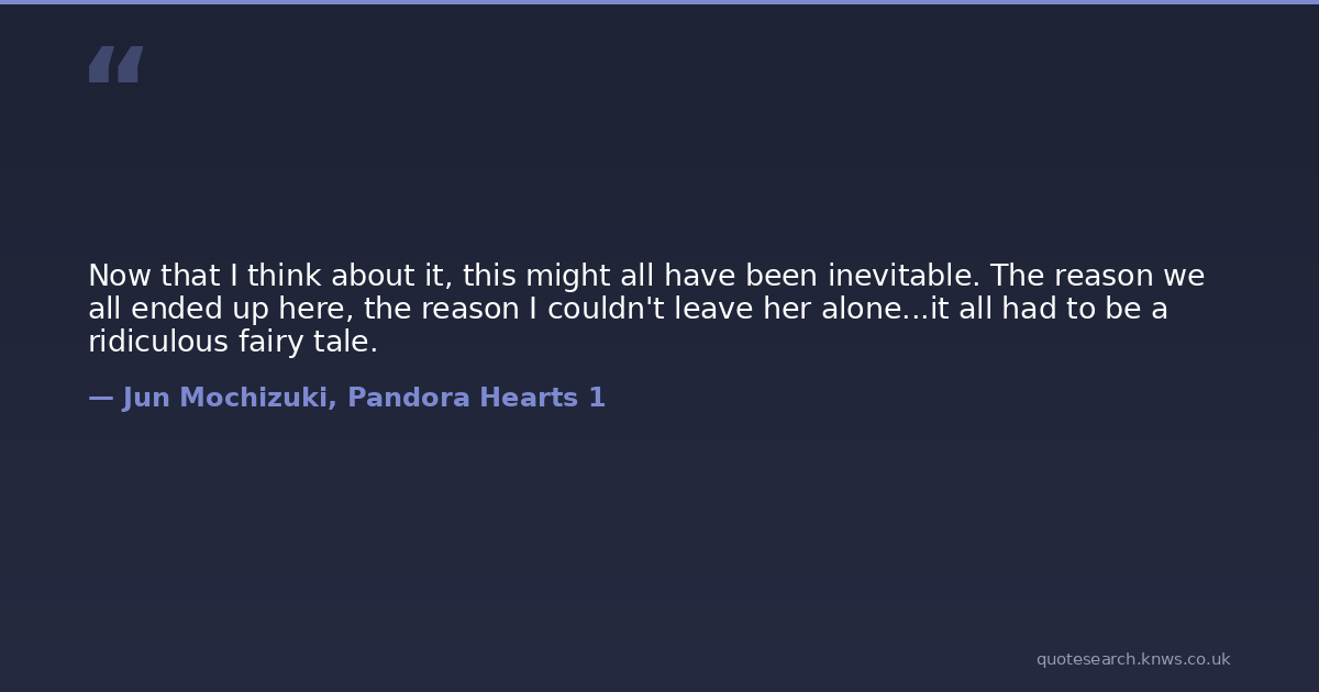 Now that I think about it, this might all have been inevitable. The reason we all ended up here, the reason I couldn't leave her alone...it all had to be a ridiculous fairy tale.