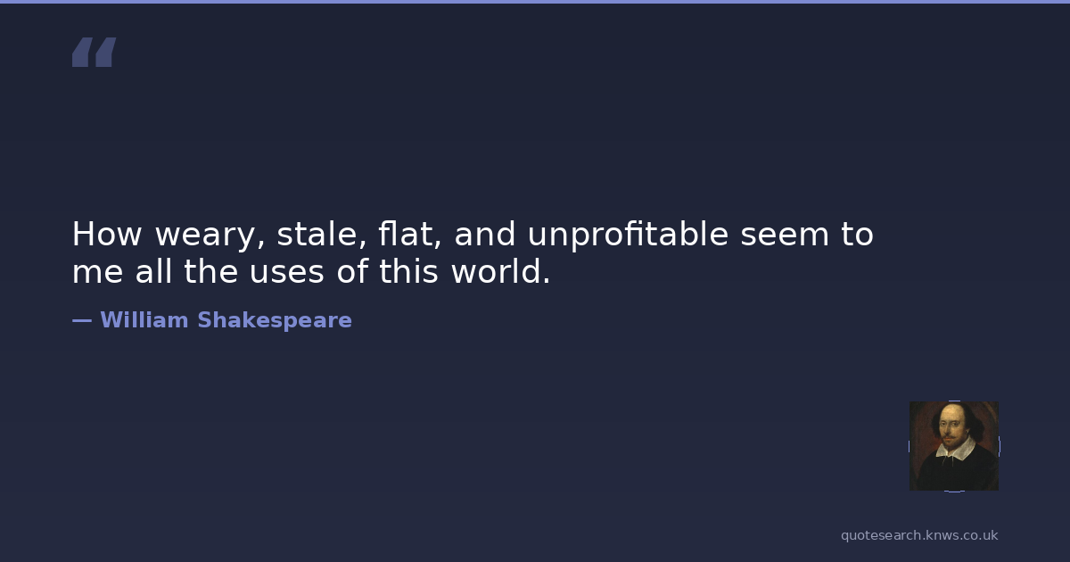 How weary, stale, flat, and unprofitable seem to me all the uses of this world.