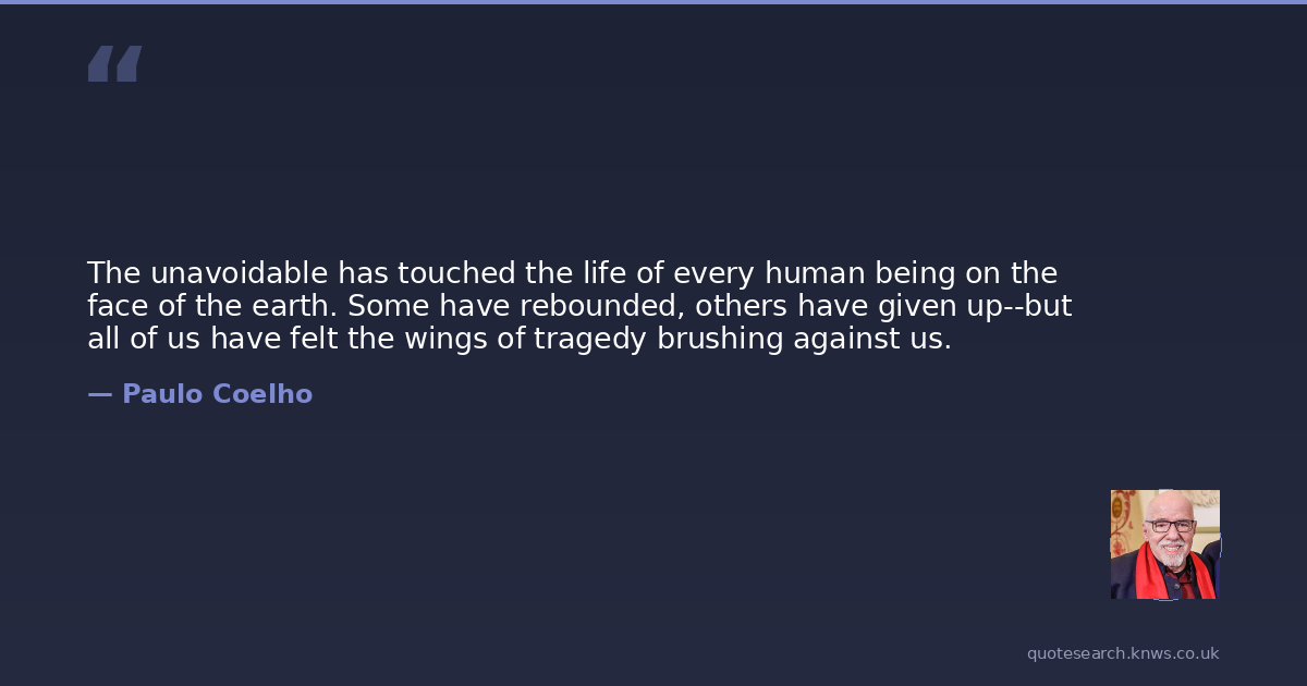 The unavoidable has touched the life of every human being on the face of the earth. Some have rebounded, others have given up--but all of us have felt the wings of tragedy brushing against us.