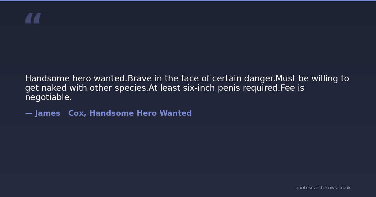Handsome hero wanted.Brave in the face of certain danger.Must be willing to get naked with other species.At least six-inch penis required.Fee is negotiable.