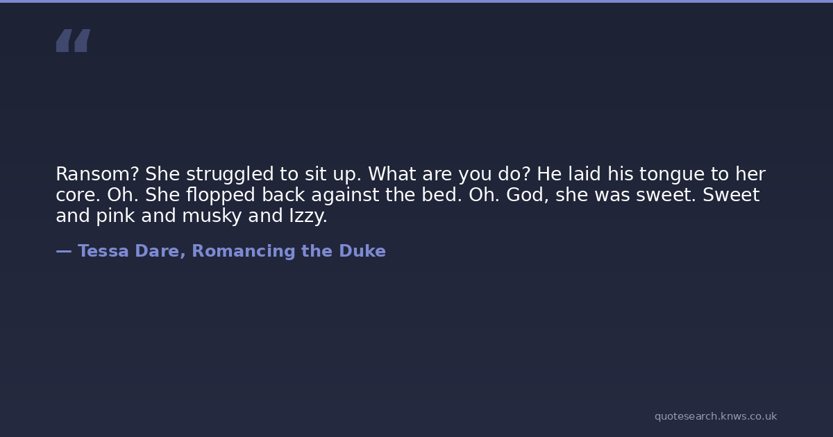 Ransom? She struggled to sit up. What are you do? He laid his tongue to her core. Oh. She flopped back against the bed. Oh. God, she was sweet. Sweet and pink and musky and Izzy.