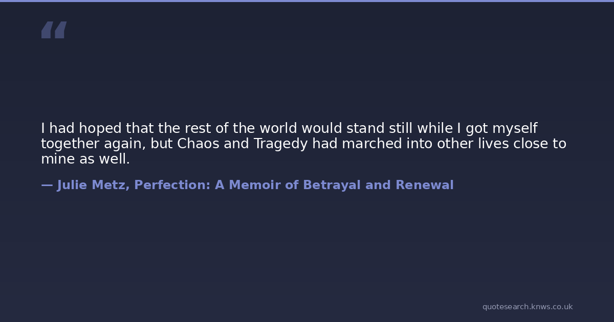 I had hoped that the rest of the world would stand still while I got myself together again, but Chaos and Tragedy had marched into other lives close to mine as well.