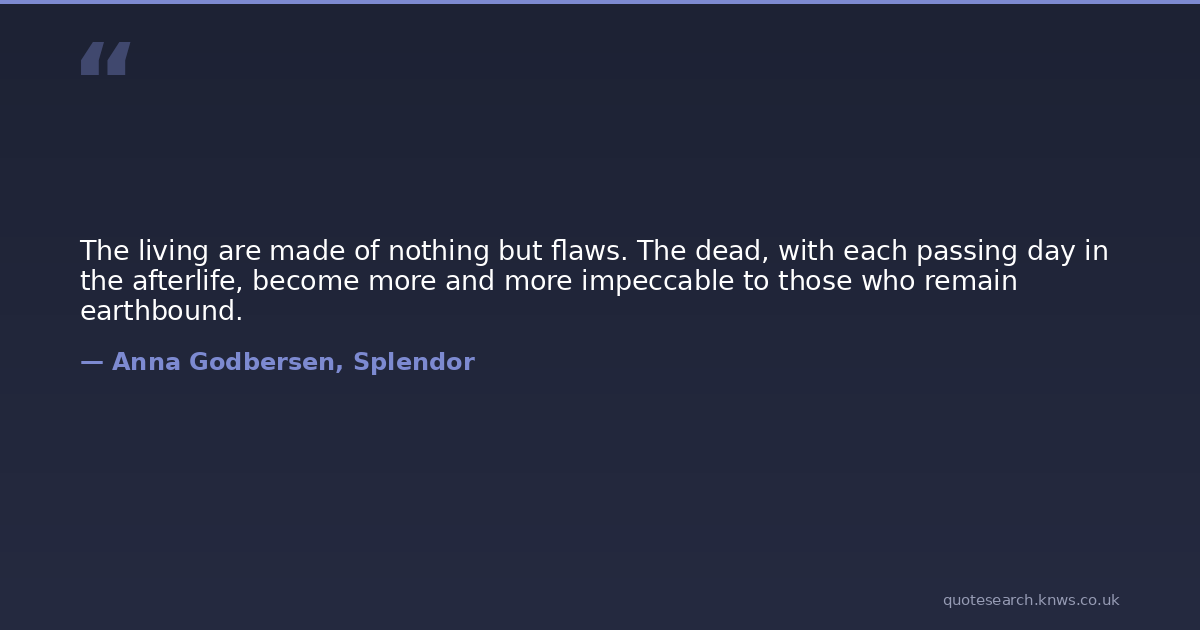 The living are made of nothing but flaws. The dead, with each passing day in the afterlife, become more and more impeccable to those who remain earthbound.