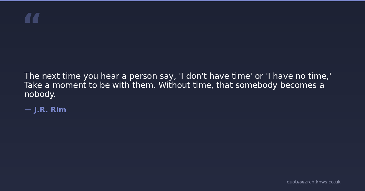 The next time you hear a person say, 'I don't have time' or 'I have no time,' Take a moment to be with them. Without time, that somebody becomes a nobody.