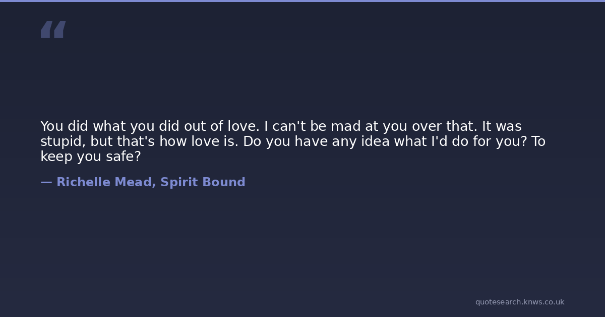 You did what you did out of love. I can't be mad at you over that. It was stupid, but that's how love is. Do you have any idea what I'd do for you? To keep you safe?