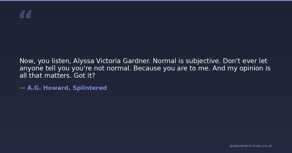 Now, you listen, Alyssa Victoria Gardner. Normal is subjective. Don't ever let anyone tell you you're not normal. Because you are to me. And my opinion is all that matters. Got it?