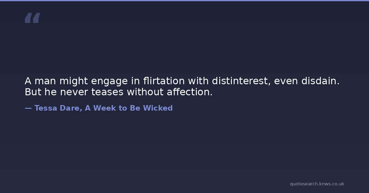 A man might engage in flirtation with distinterest, even disdain. But he never teases without affection.