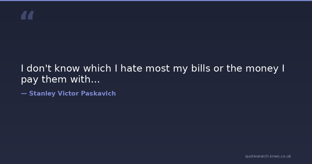 I don't know which I hate most my bills or the money I pay them with...