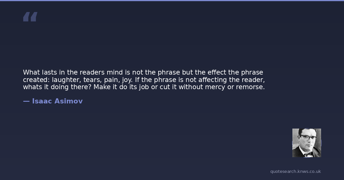 What lasts in the readers mind is not the phrase but the effect the phrase created: laughter, tears, pain, joy. If the phrase is not affecting the reader, whats it doing there? Make it do its job or cut it without mercy or remorse.