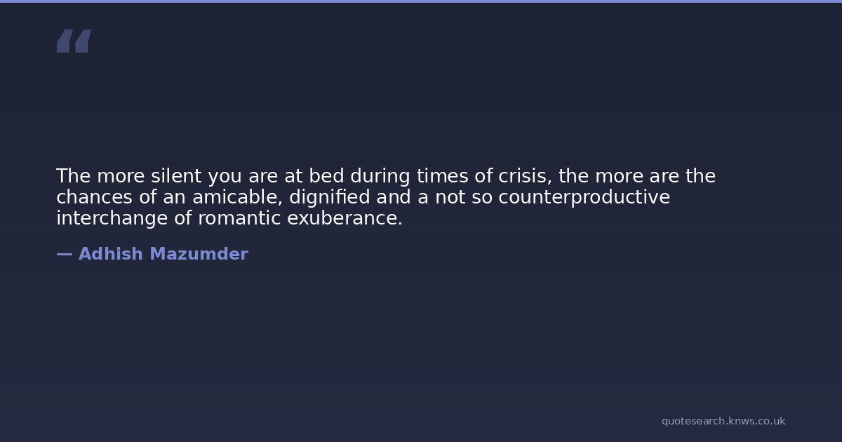 The more silent you are at bed during times of crisis, the more are the chances of an amicable, dignified and a not so counterproductive interchange of romantic exuberance.