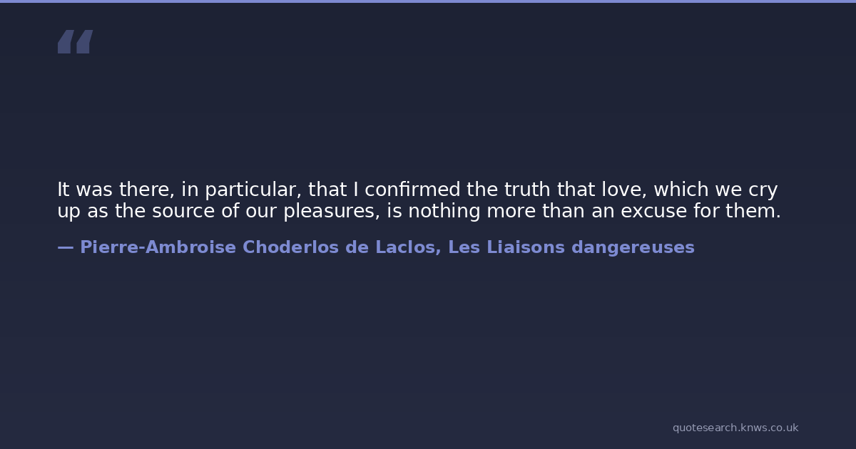 It was there, in particular, that I confirmed the truth that love, which we cry up as the source of our pleasures, is nothing more than an excuse for them.
