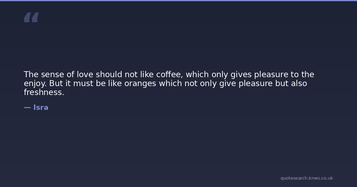 The sense of love should not like coffee, which only gives pleasure to the enjoy. But it must be like oranges which not only give pleasure but also freshness.