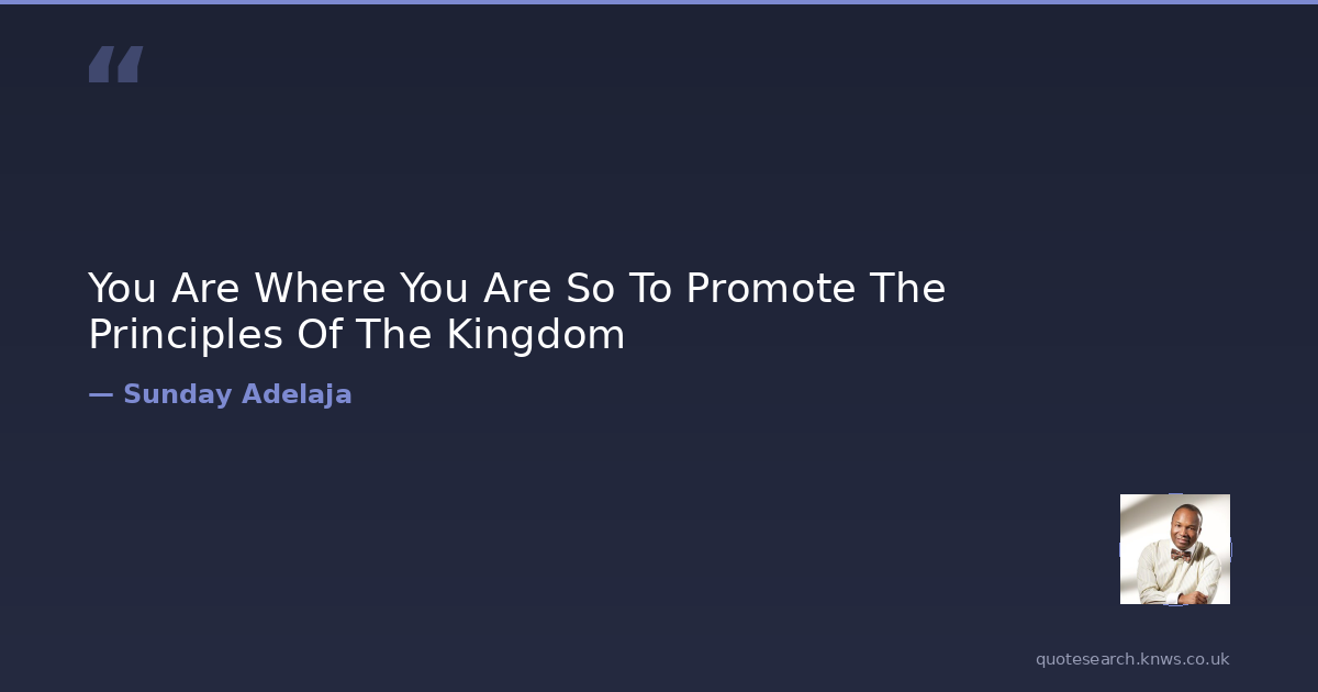 You Are Where You Are So To Promote The Principles Of The Kingdom