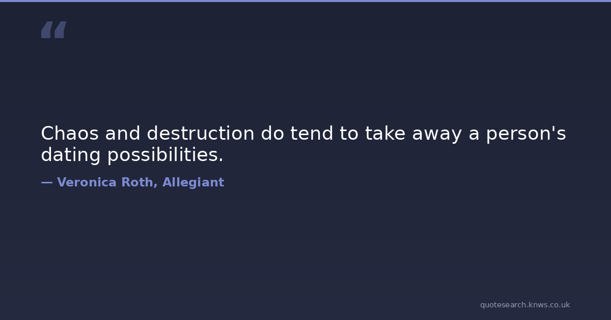 Chaos and destruction do tend to take away a person's dating possibilities.