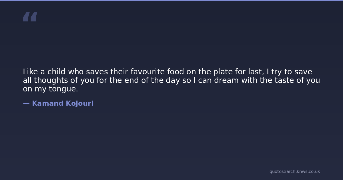 Like a child who saves their favourite food on the plate for last, I try to save all thoughts of you for the end of the day so I can dream with the taste of you on my tongue.