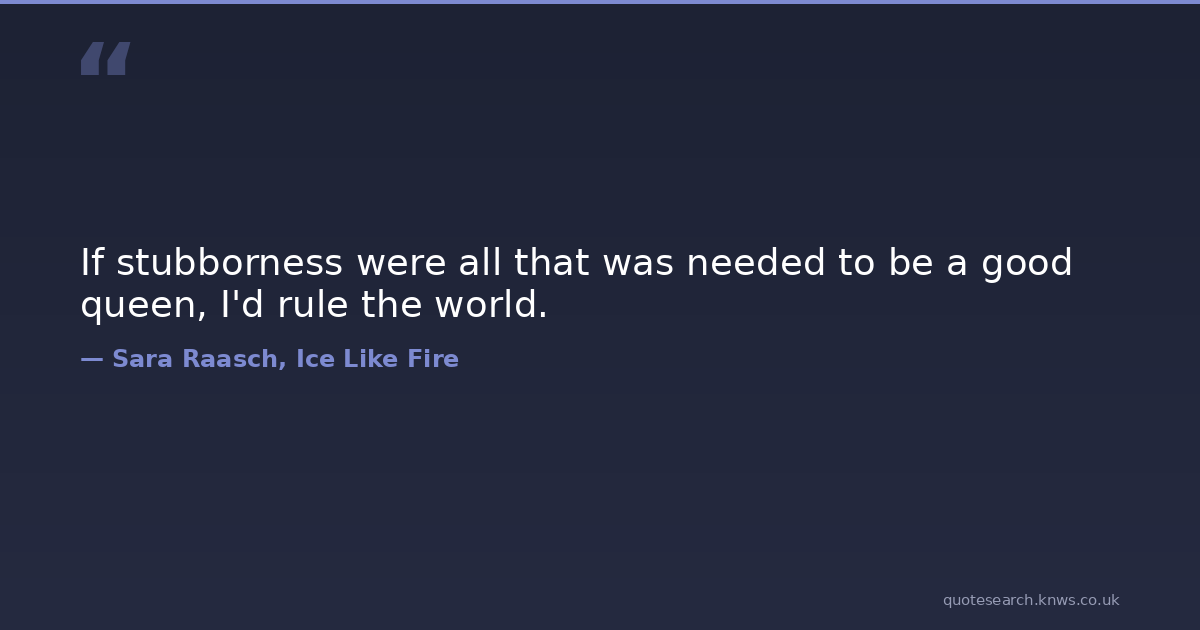 If stubborness were all that was needed to be a good queen, I'd rule the world.