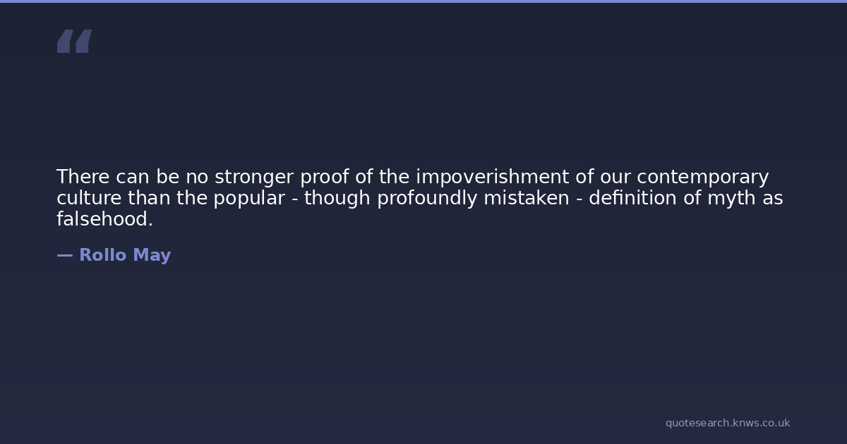 There can be no stronger proof of the impoverishment of our contemporary culture than the popular - though profoundly mistaken - definition of myth as falsehood.