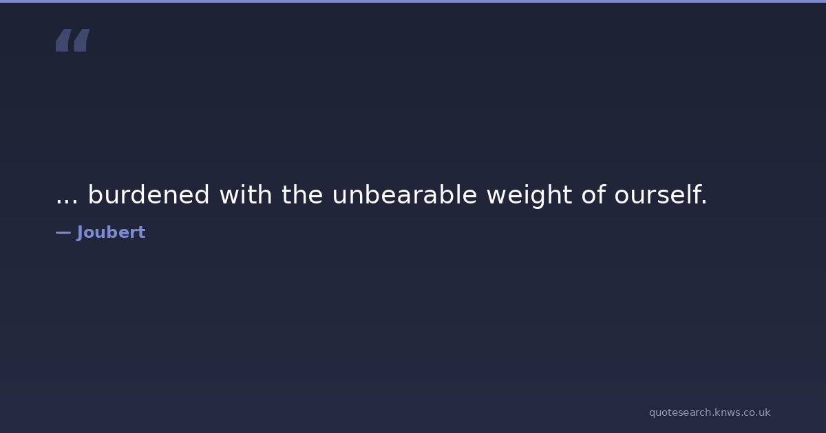 ... burdened with the unbearable weight of ourself.