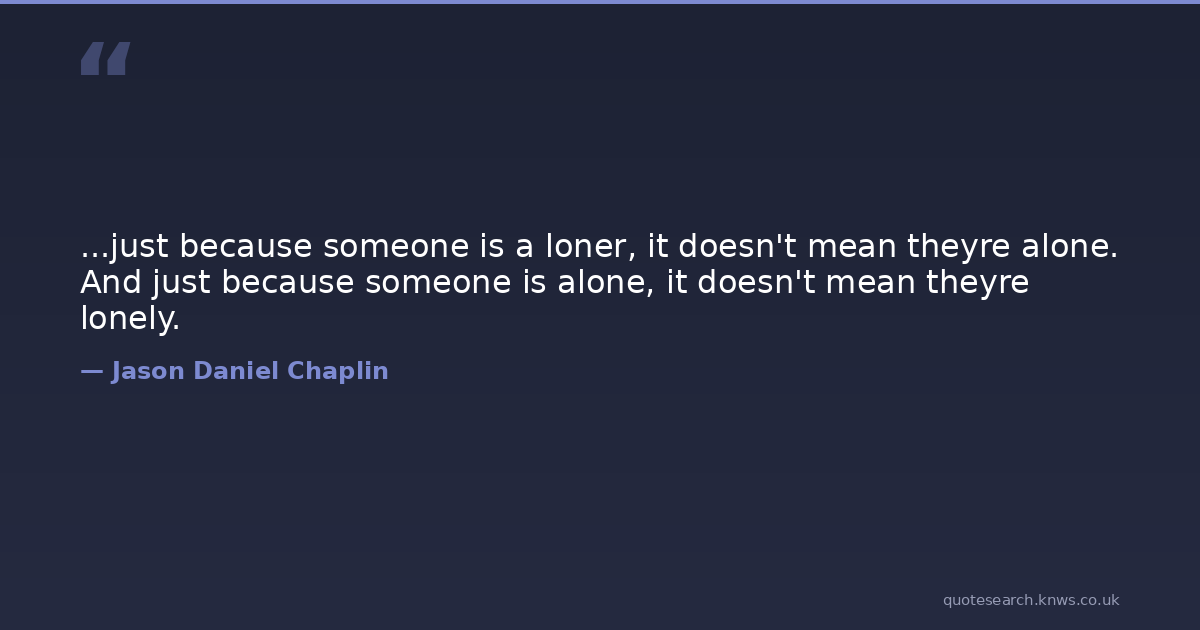 ...just because someone is a loner, it doesn't mean theyre alone. And just because someone is alone, it doesn't mean theyre lonely.