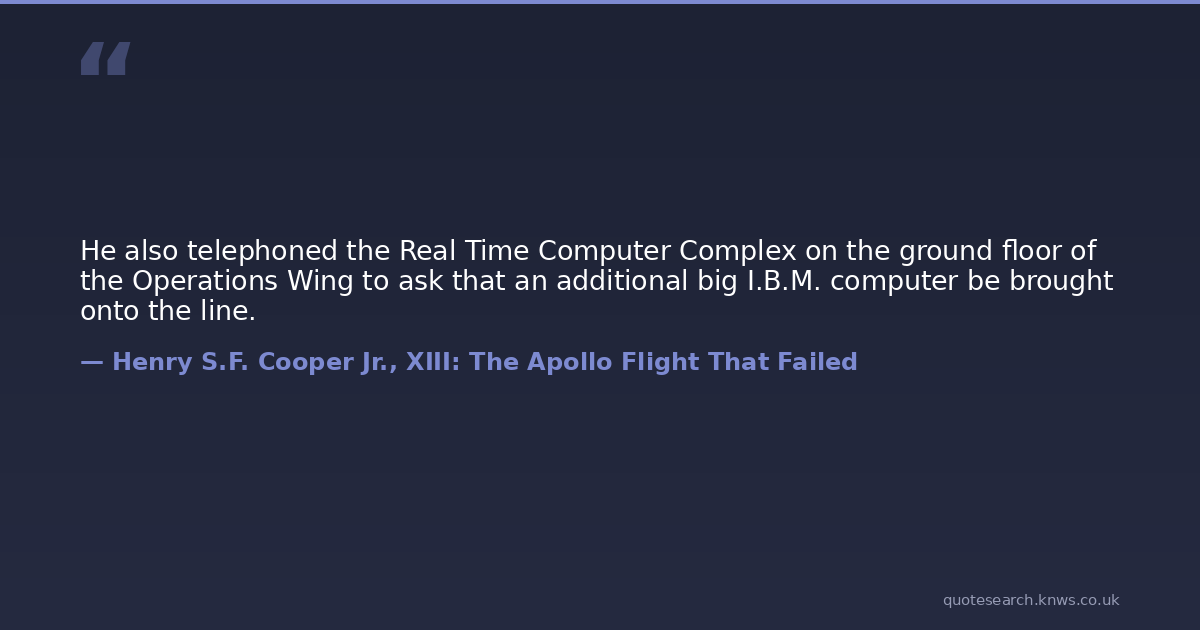 He also telephoned the Real Time Computer Complex on the ground floor of the Operations Wing to ask that an additional big I.B.M. computer be brought onto the line.