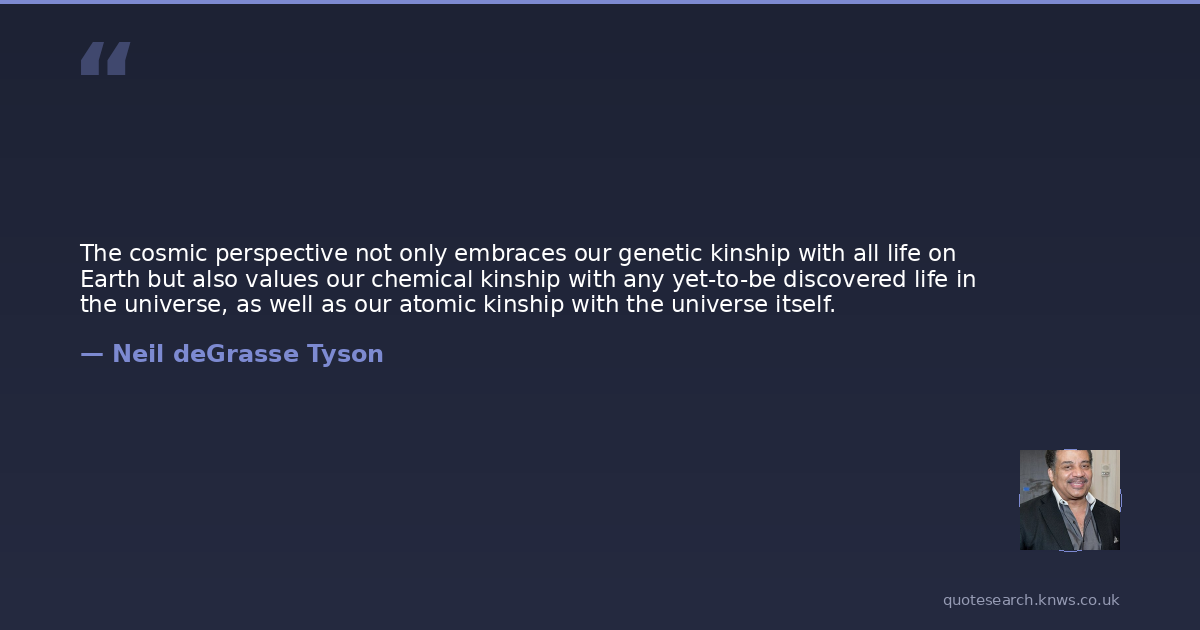 The cosmic perspective not only embraces our genetic kinship with all life on Earth but also values our chemical kinship with any yet-to-be discovered life in the universe, as well as our atomic kinship with the universe itself.