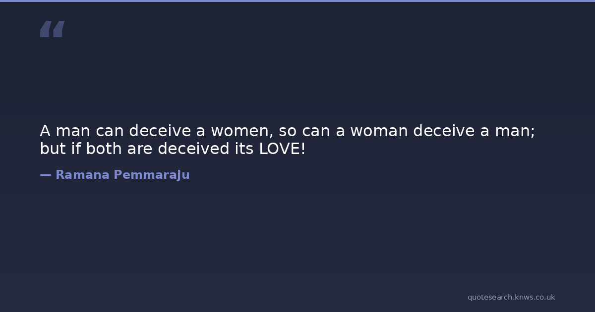 A man can deceive a women, so can a woman deceive a man; but if both are deceived its LOVE!