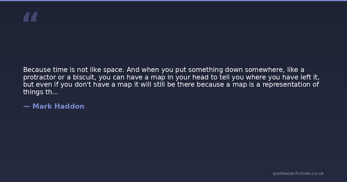 Because time is not like space. And when you put something down somewhere, like a protractor or a biscuit, you can have a map in your head to tell you where you have left it, but even if you don't have a map it will still be there because a map is a representation of things that actually exist so you can find the protractor or the biscuits again. And a timetable is a map of time, except that if you don't have a timetable, time isn't there like the landing and the garden and the route to school.