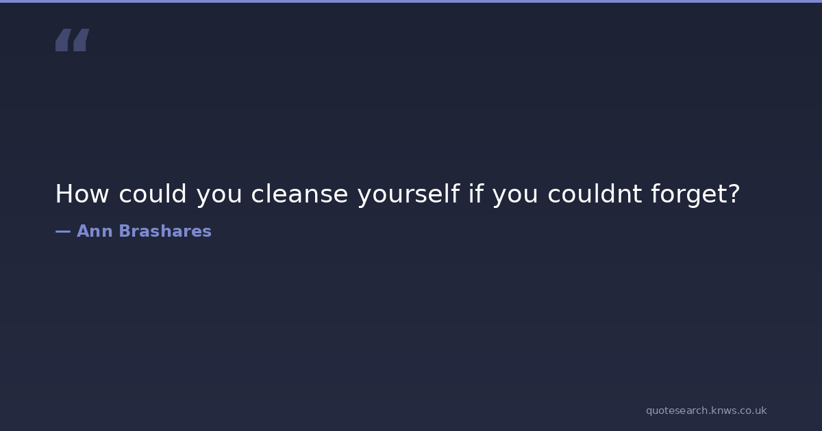 How could you cleanse yourself if you couldnt forget?
