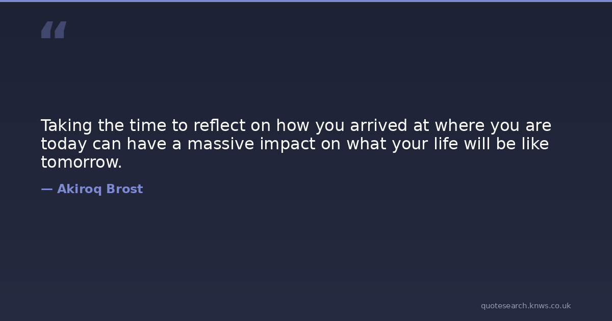 Taking the time to reflect on how you arrived at where you are today can have a massive impact on what your life will be like tomorrow.