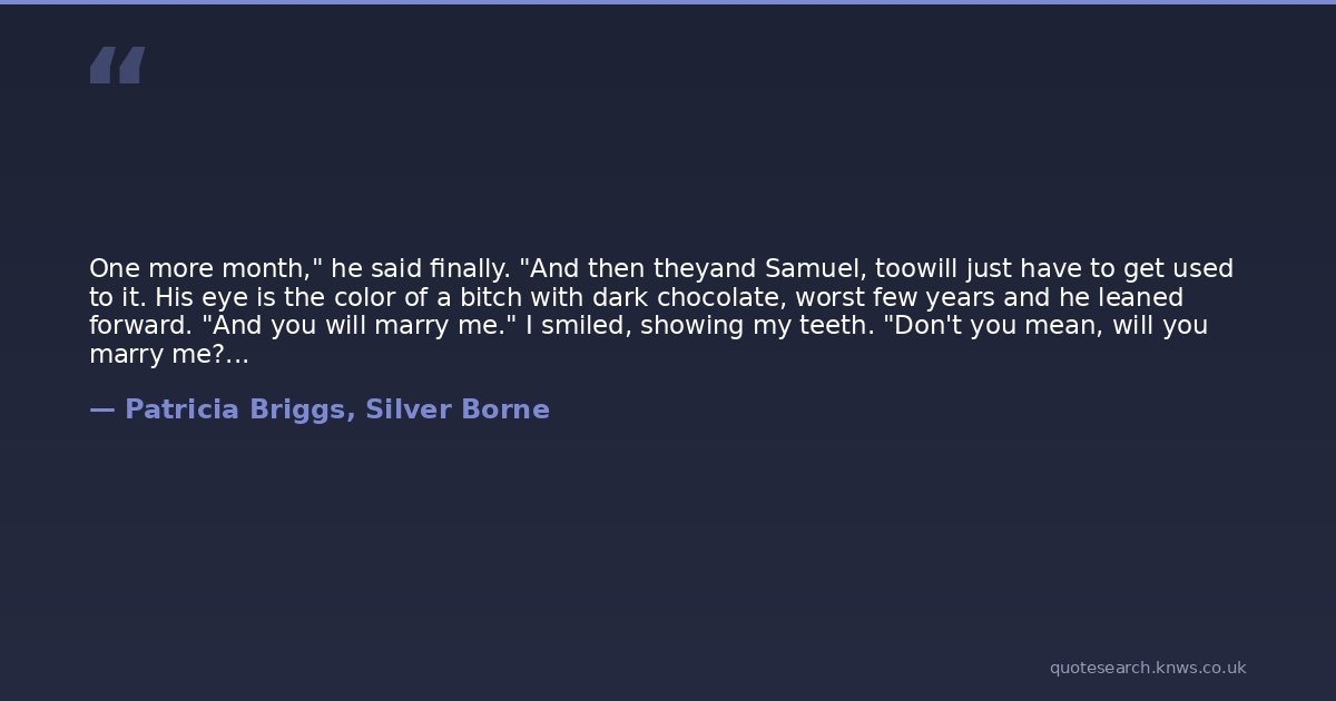 One more month," he said finally. "And then theyand Samuel, toowill just have to get used to it. His eye is the color of a bitch with dark chocolate, worst few years and he leaned forward. "And you will marry me." I smiled, showing my teeth. "Don't you mean, will you marry me?" I meant it to be funny, but his eyes brightened until the gold flecks were swimming in the darkness. "You had your chance to run, coyote. It's too late now.