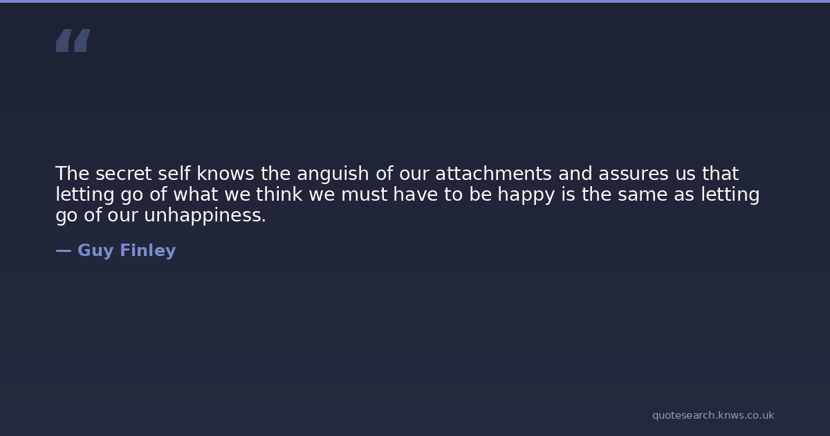 The secret self knows the anguish of our attachments and assures us that letting go of what we think we must have to be happy is the same as letting go of our unhappiness.