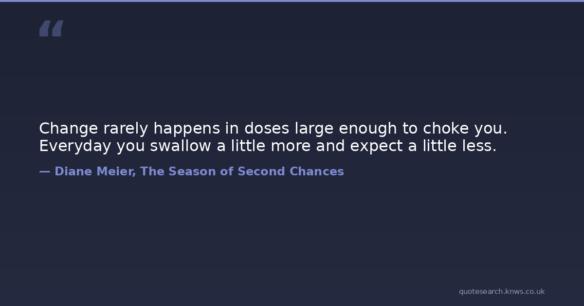Change rarely happens in doses large enough to choke you. Everyday you swallow a little more and expect a little less.