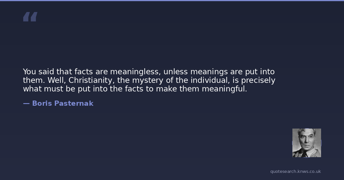 You said that facts are meaningless, unless meanings are put into them. Well, Christianity, the mystery of the individual, is precisely what must be put into the facts to make them meaningful.