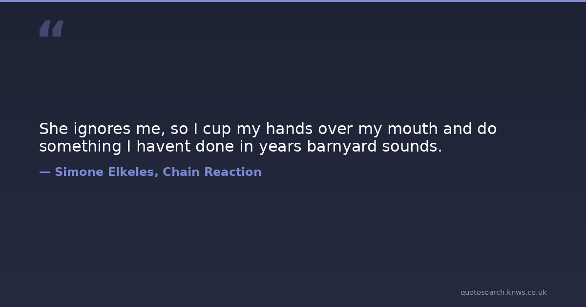 She ignores me, so I cup my hands over my mouth and do something I havent done in years barnyard sounds.