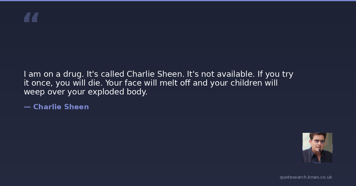 I am on a drug. It's called Charlie Sheen. It's not available. If you try it once, you will die. Your face will melt off and your children will weep over your exploded body.
