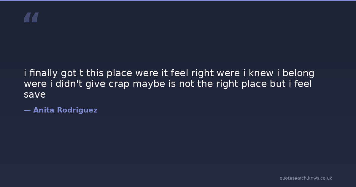 i finally got t this place were it feel right were i knew i belong were i didn't give crap maybe is not the right place but i feel save