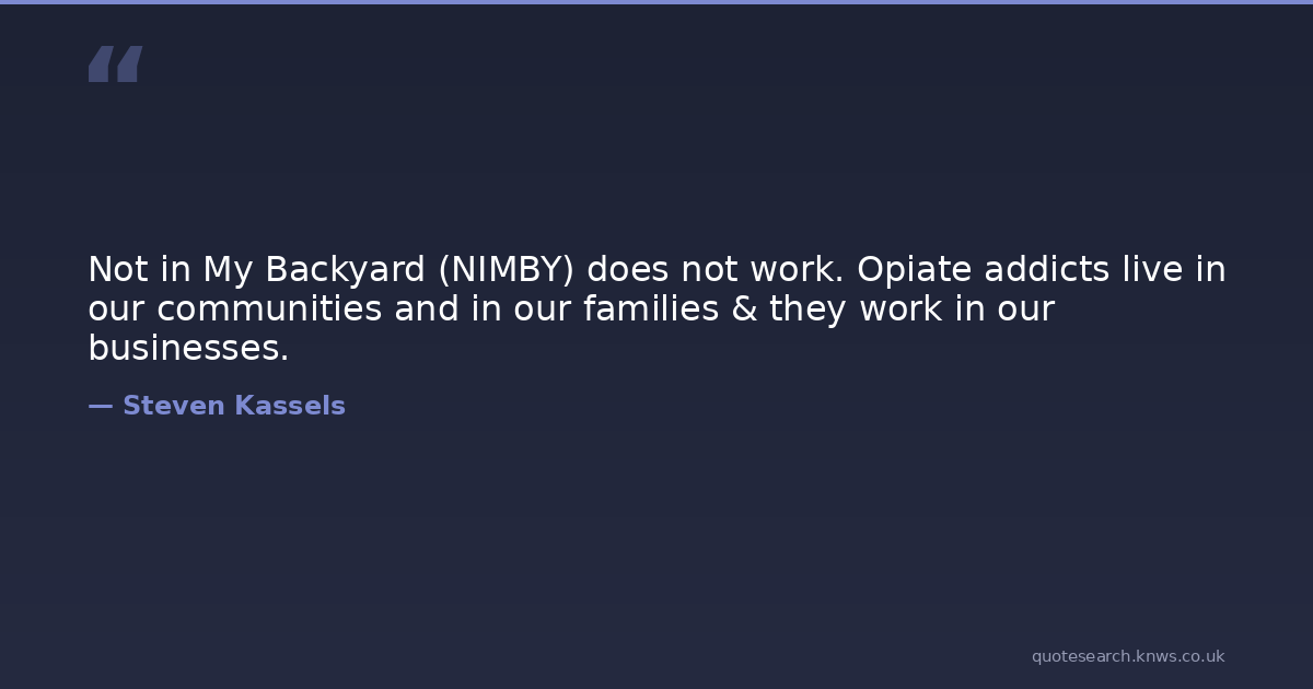 Not in My Backyard (NIMBY) does not work. Opiate addicts live in our communities and in our families & they work in our businesses.