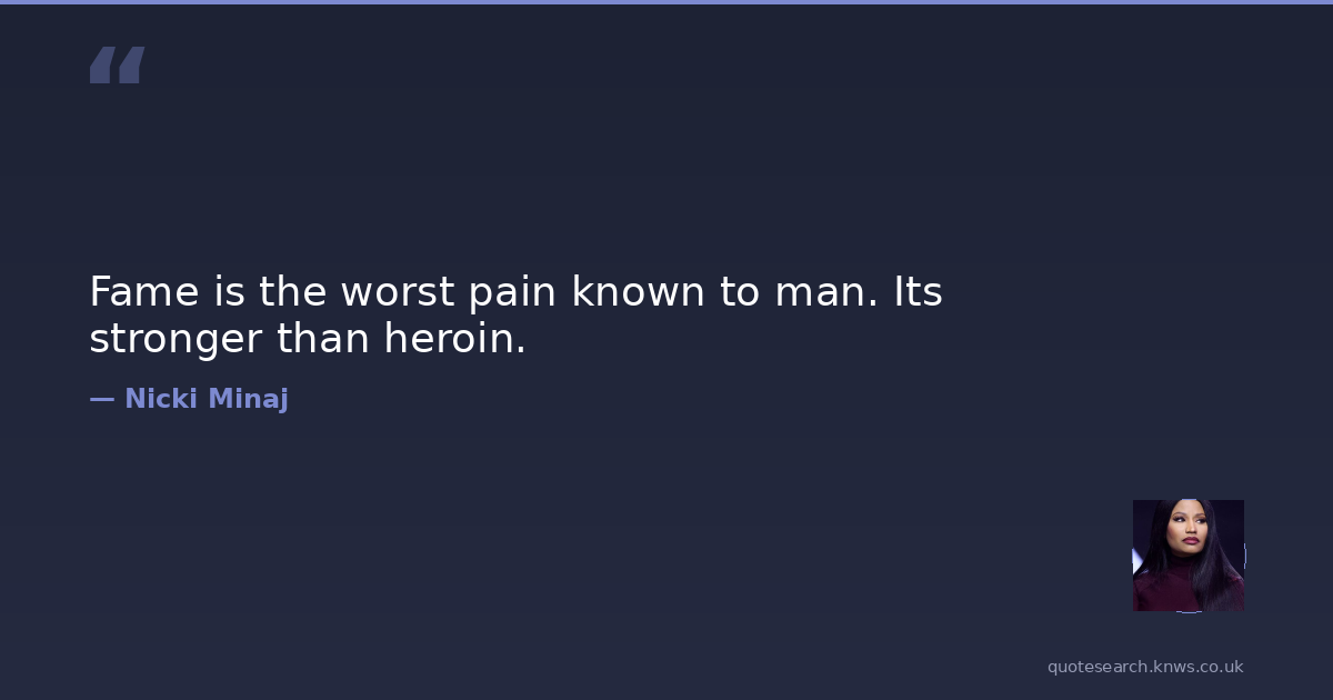 Fame is the worst pain known to man. Its stronger than heroin.