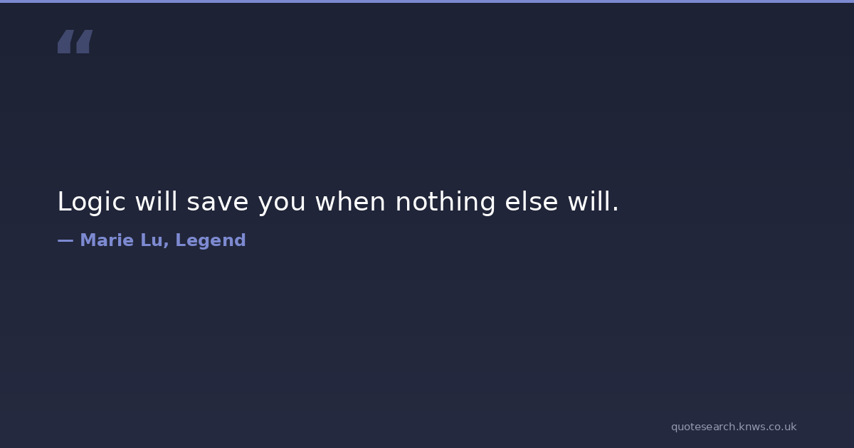 Logic will save you when nothing else will. logic Download Image Share on X Share on Facebook Copy Link