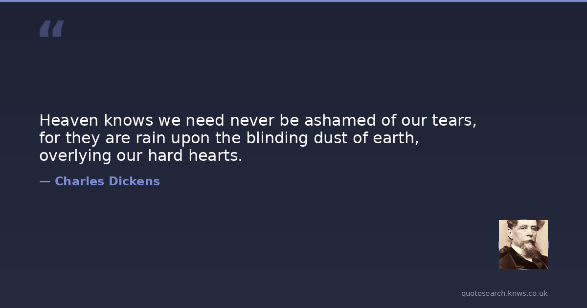 Heaven knows we need never be ashamed of our tears, for they are rain upon the blinding dust of earth, overlying our hard hearts.