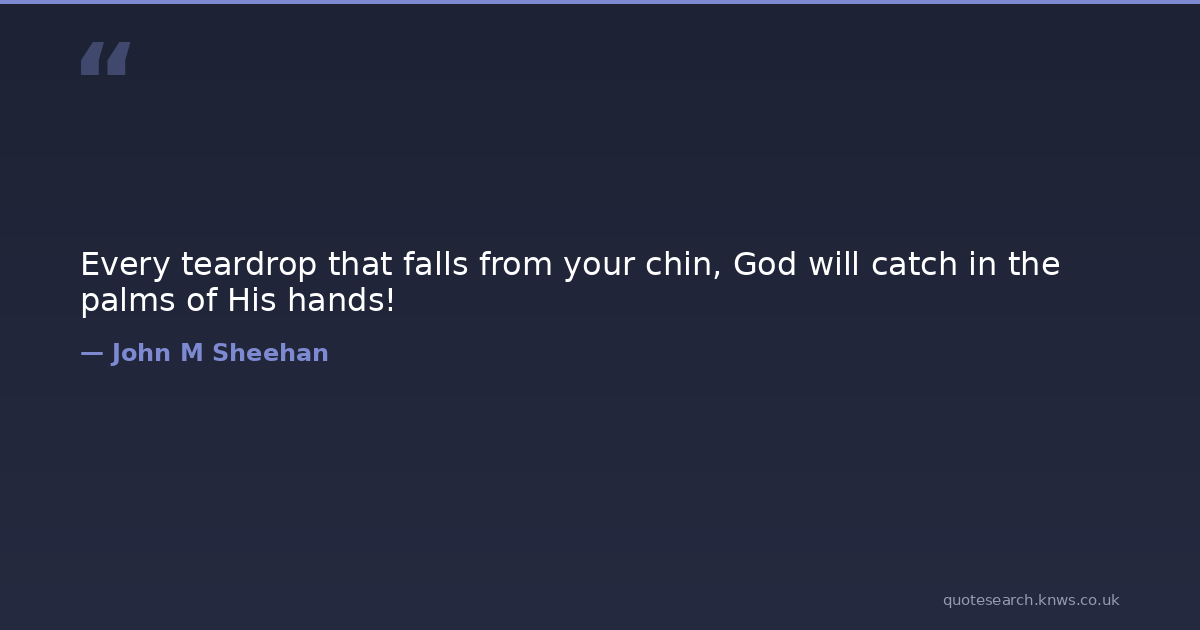 Every teardrop that falls from your chin, God will catch in the palms of His hands! tears tears-of-joy tears-of-love tears-quotes Download Image Share on X Share on Facebook Copy Link