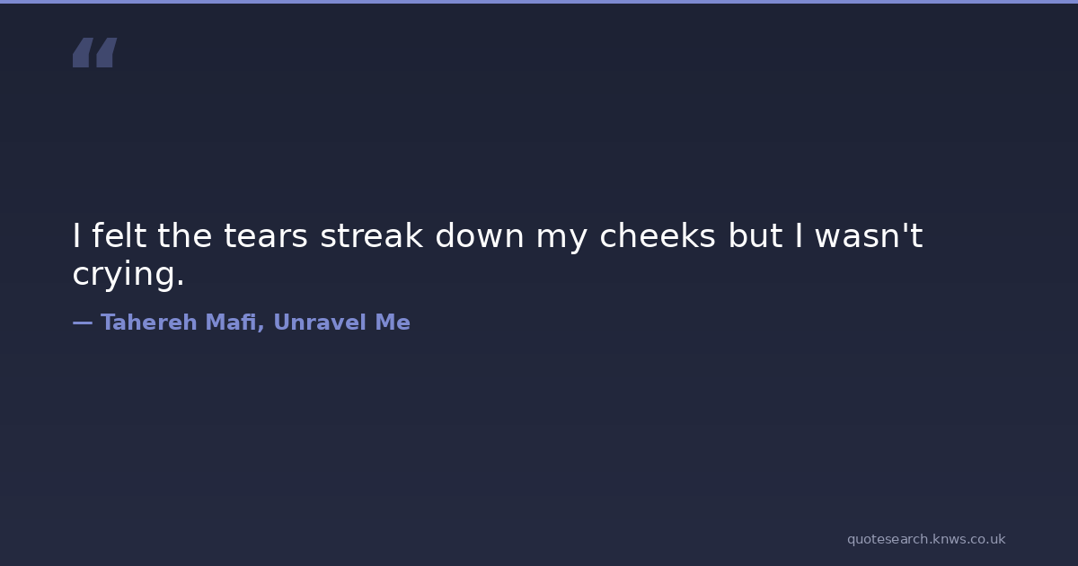 I felt the tears streak down my cheeks but I wasn't crying. tears Download Image Share on X Share on Facebook Copy Link