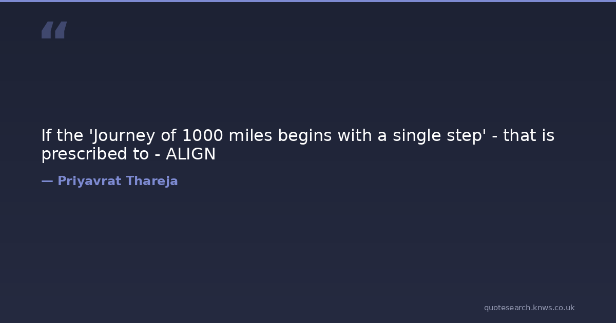 If the 'Journey of 1000 miles begins with a single step' - that is prescribed to - ALIGN