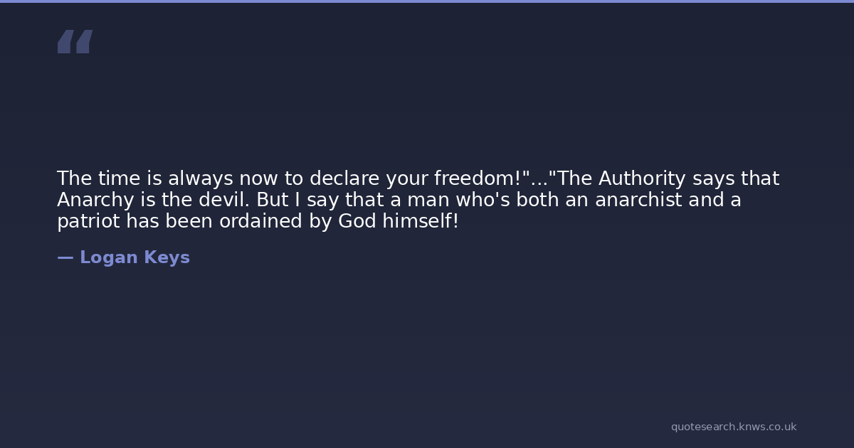 The time is always now to declare your freedom!"..."The Authority says that Anarchy is the devil. But I say that a man who's both an anarchist and a patriot has been ordained by God himself!