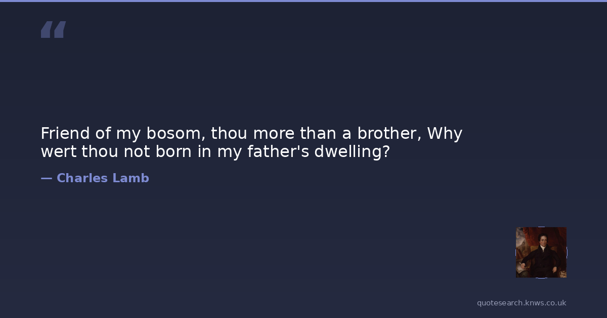 Charles Lamb was a 18th-century English essayist, poet, and antiquarian. Charles Lamb was an English essayist, poet, and antiquarian, best known for his Essays of Elia and for the children's book Tales from Shakespeare, co-authored with his sister, Mary Lamb (1764–1847). Read more on Wikipedia →