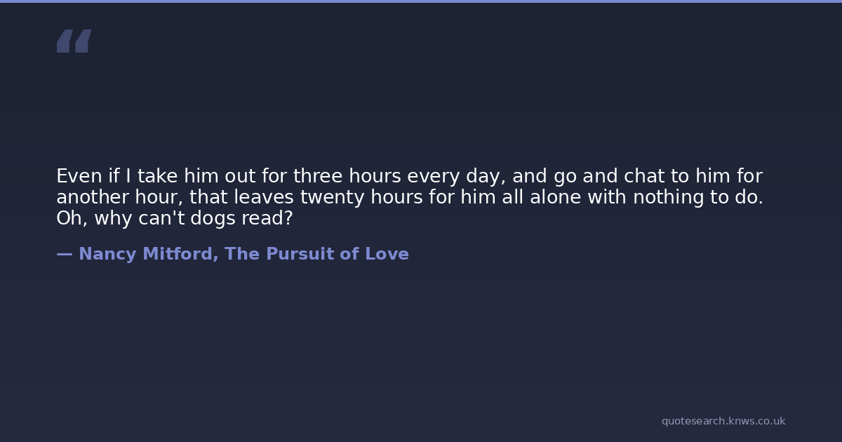 Even if I take him out for three hours every day, and go and chat to him for another hour, that leaves twenty hours for him all alone with nothing to do. Oh, why can't dogs read?