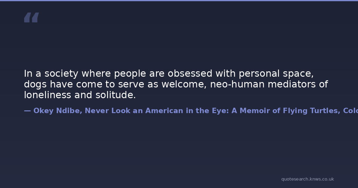 In a society where people are obsessed with personal space, dogs have come to serve as welcome, neo-human mediators of loneliness and solitude.