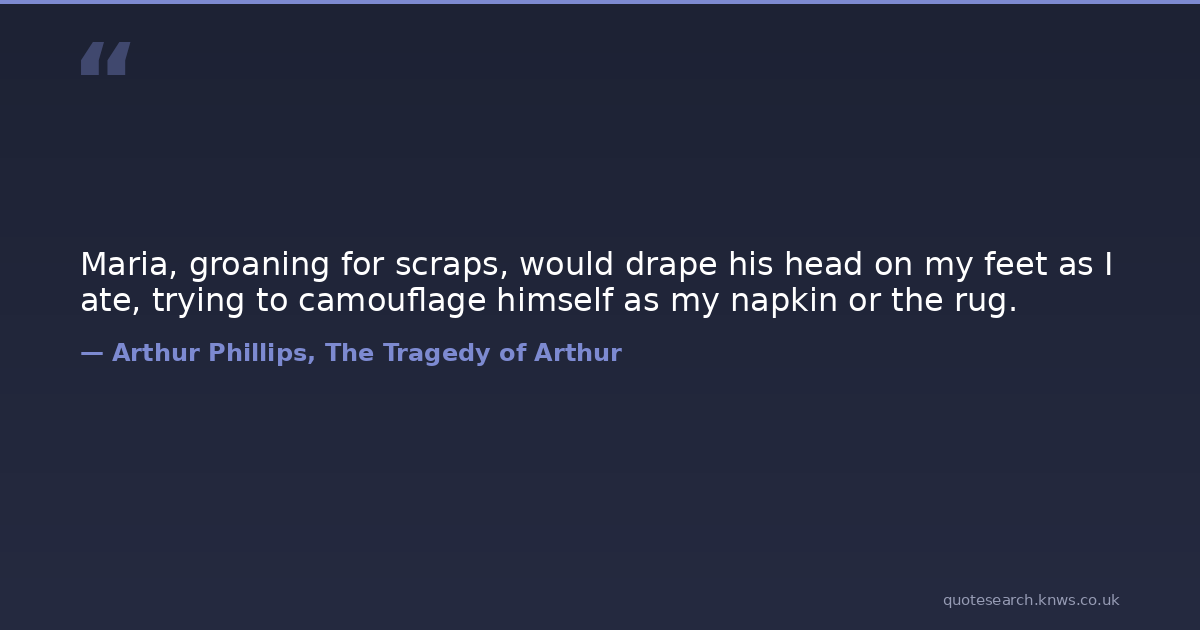 Maria, groaning for scraps, would drape his head on my feet as I ate, trying to camouflage himself as my napkin or the rug.