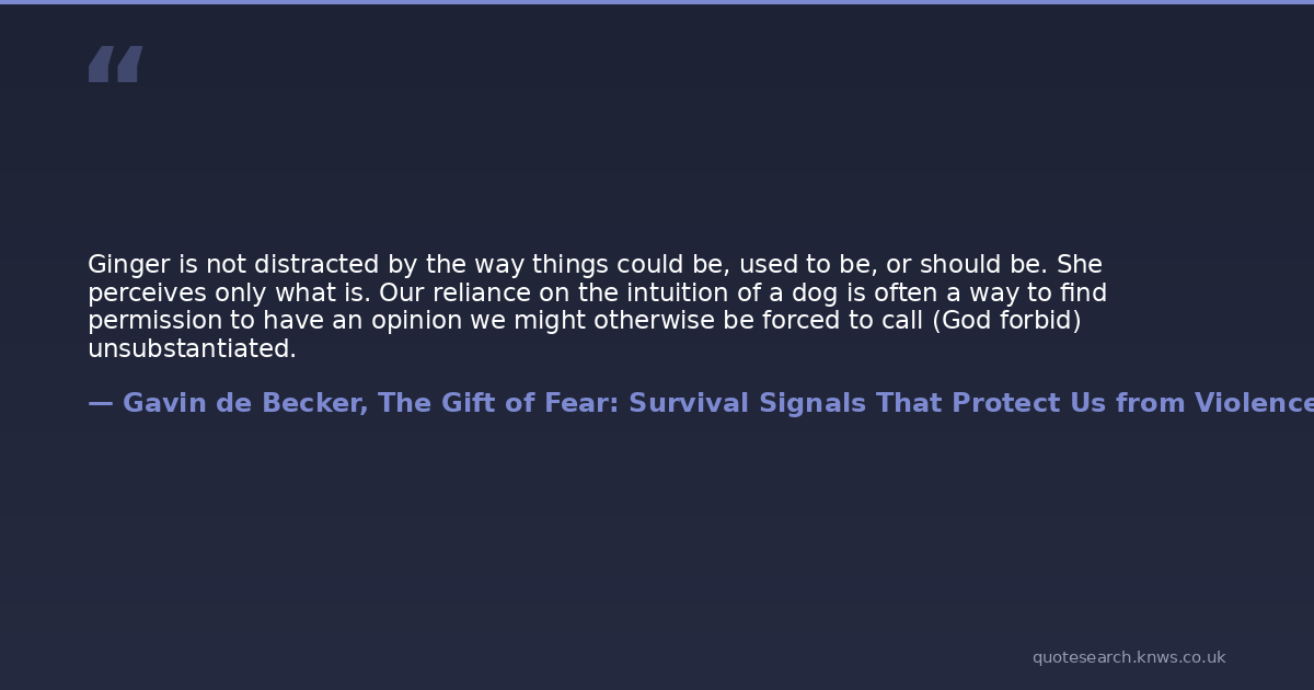 Ginger is not distracted by the way things could be, used to be, or should be. She perceives only what is. Our reliance on the intuition of a dog is often a way to find permission to have an opinion we might otherwise be forced to call (God forbid) unsubstantiated.
