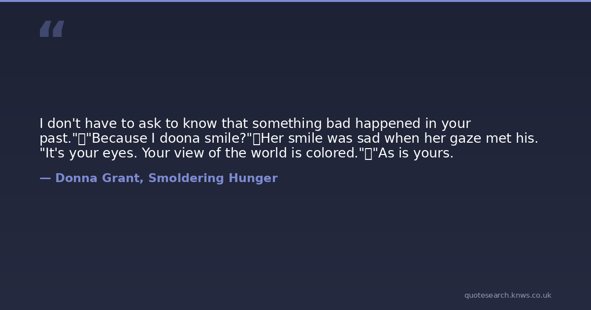I don't have to ask to know that something bad happened in your past." "Because I doona smile?" Her smile was sad when her gaze met his. "It's your eyes. Your view of the world is colored." "As is yours.